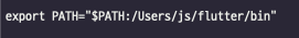 아래와 같이 export PATH="$PATH:[폴더 주소]/flutter/bin" 으로 등록해주세요.
