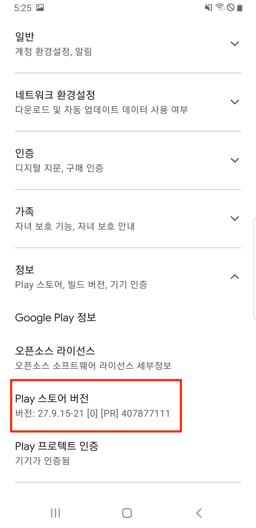 Play 스토어 버전을 연속으로 계속 클릭해주세요. 개발자 모드가 열립니다.