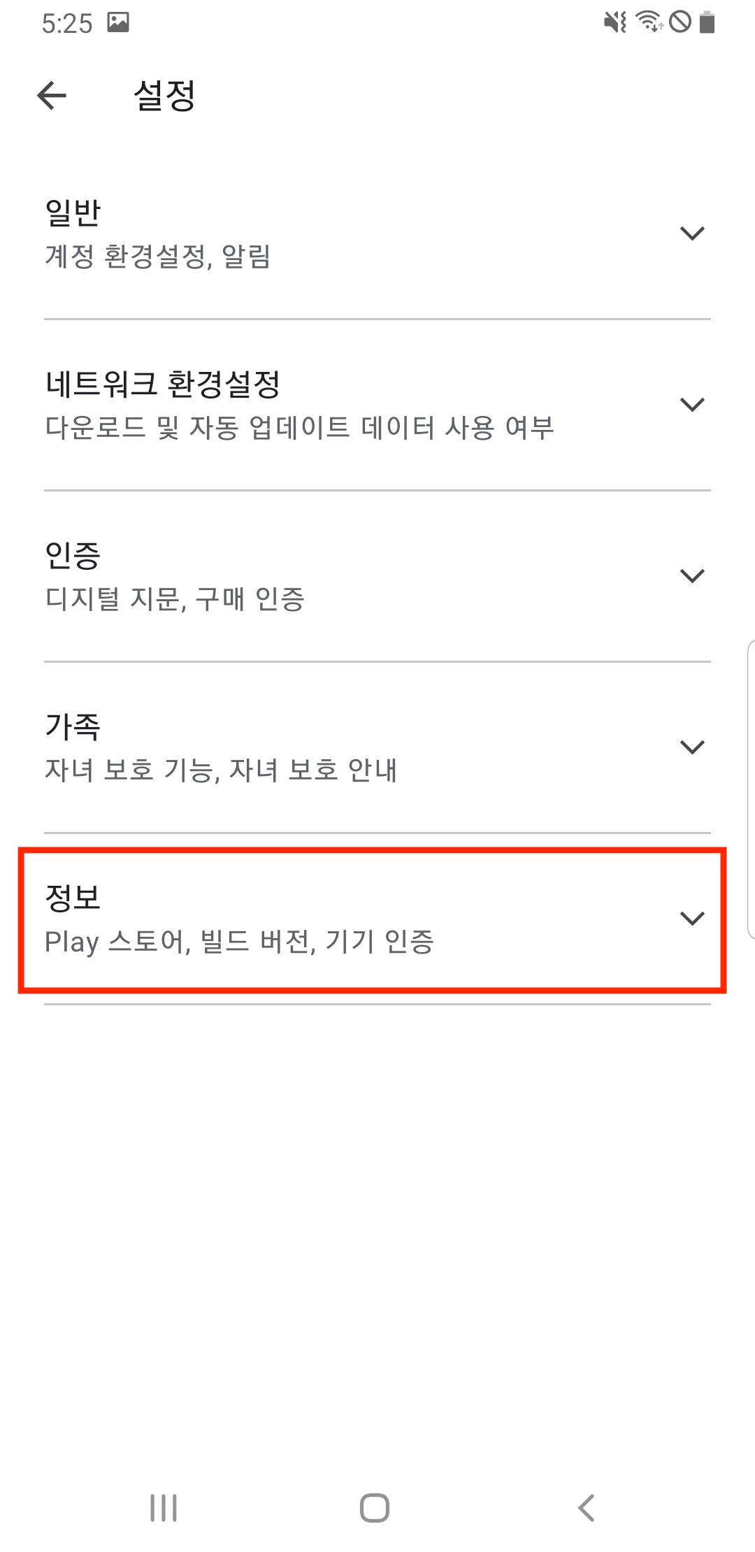 가장 아래쪽에 정보를 클릭합니다.