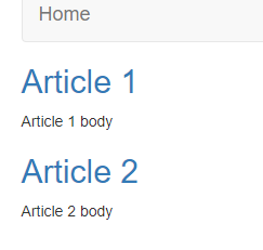 이 snippet은 payload 변수의 모든 항목을 반복하고, 각 기사의 제목과 컨텐츠를 표시합니다. 위의 snippet도 각 기사로 연결됩니다. 아직 개별 기사들을 표시하기 위한 라우트 핸들러를 정의하지 않았기 때문에 이 링크는 예상대로 작동되지 않을 것입니다.