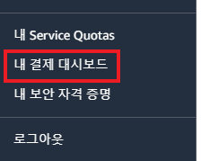 메일이 혹 도착하지 않으셨더라도 확인하실 수 있는 방법이 있습니다. aws 콘솔에 로그인 하셔서 자신의 아이디를 클릭해보시면 다음과 같은 창이 뜹니다