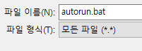 그리고 저장을 autorun.bat로 해줍니다.