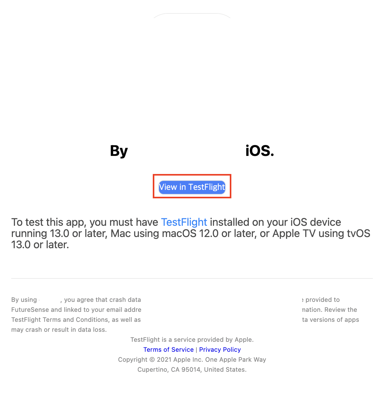 해당 어플리케이션을 TestFlight에서 설치할 수 있는 코드를 담은 메일입니다. 이제 View in TestFlight를 통해 코드를 받고, TestFlight 앱에서 내부 테스팅을 진행할 수 있습니다!