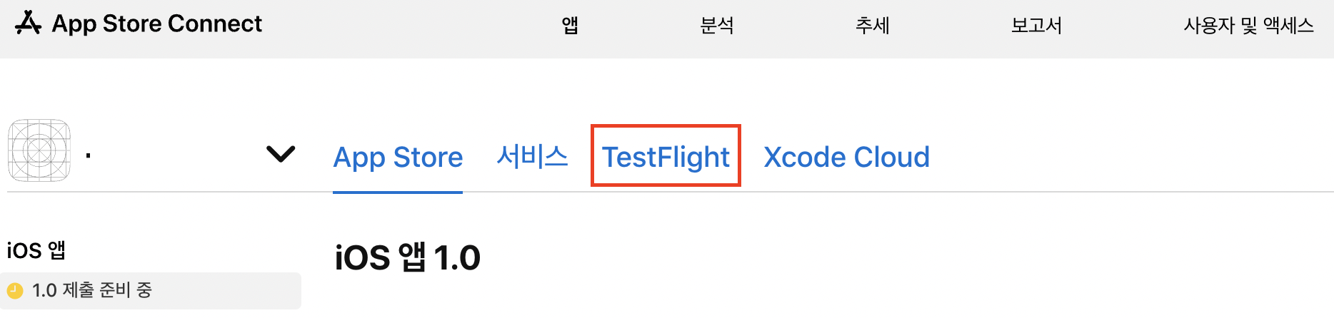 테스팅할 앱을 선택하고 TestFlight로 갑니다.