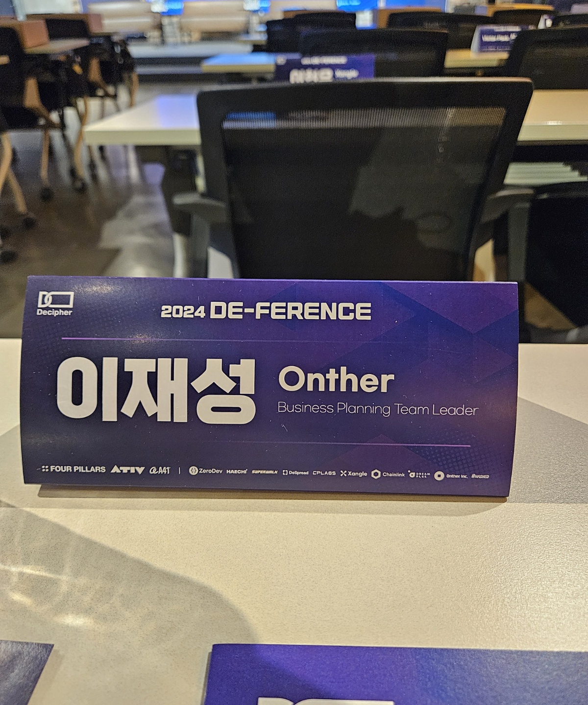 저는 운좋게도 회사 자격으로 이렇게 한 자리를 배정받을 수 있었습니다. 저희 팀 이름이 Business Planning team이 아닌데, 아마 제가 보내드린 명함 앞면 기준으로 사업기획팀장이라고 되어있어서 그대로 번역하신게 아닐까 싶네요. 영문으로 직함명이 작성되는거면 미리 말씀해주셨으면 보내드렸을텐데.. 사실 큰 상관은 없습니다. 제가 조금 어색했어서..